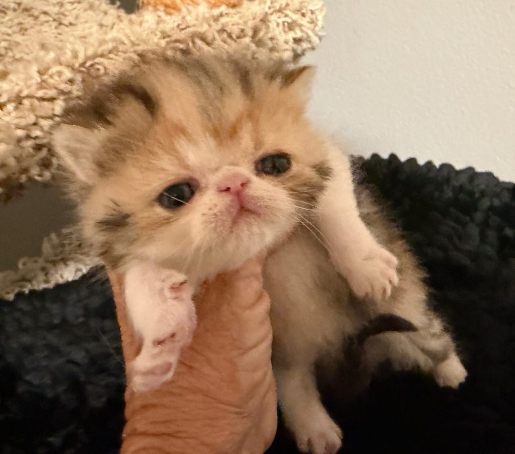 Kitten's Available Available Kittens To secure a kitten a deposit of $300 is required. All deposits are non refundable. The price of a kitten is $1800. Sammy and Micah Garfield Evie and MicahTigerlily Evie and Micah Evie and Micah This little Calico is adorable. Her name is Callie. Available Kittens To secure a kitten a deposit of 300 is required. All deposits are non refundable. The price of a kitten is 1800. Calico Exotic LH girl Red boyLH exotic Exotic tabby SH boy Exotic whiteSH girl